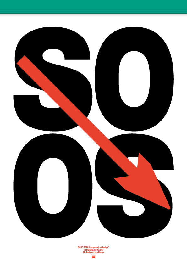 2018년부터 매년 달력을 만드는 프로젝트를 해오고 있다. 나는 달력에 모든 스케쥴을 써놓기 때문에 한 해가 지난 후에 그것은 하나의 일기장과 비슷한 모습을 하고 있다. 그래서 2018년 달력은 메모장과 비슷한 모습의 디자인이 되었고, 2019년은 본래 작업중의 줄임말인 W.I.P(Work In Progressive)을 다르게 해석하여 평화 속의 작업(Work In Peace)을 모티브로 작업하였다. 이번 2020년 달력은 앞 뒤가 똑같이 반복하는 해다 보니 숫자 2를 알파벳 S로 대치하여 SOSO라는 단어를 만들었다. SOSO는 한글로 읽었을때 소소하다는 표현을 떠올릴 수 있다. 사실 일상은 대수롭지 않고 자질구레한 날들이지 않은가? 그리고 연휴를 화살표로 표현하는 습관이 있어 내지에 동일하게 표현하였고, 표지는 2도 리소 프린트하였다.